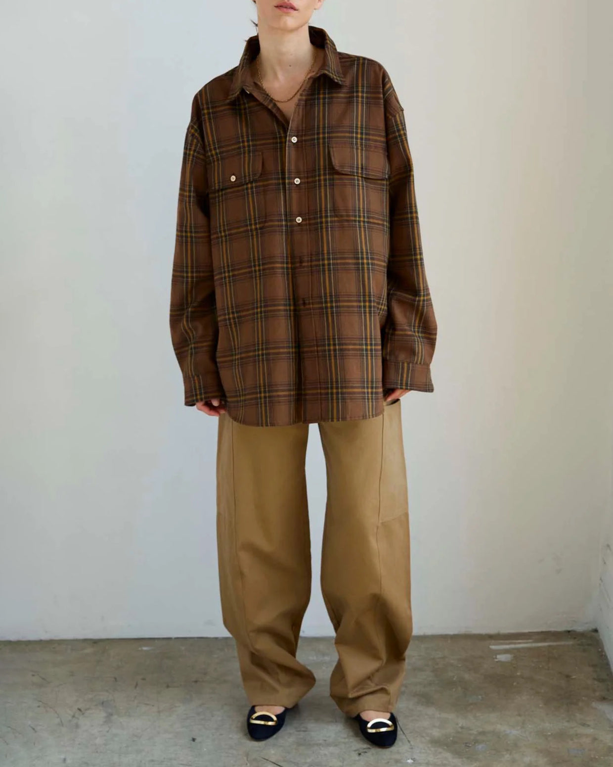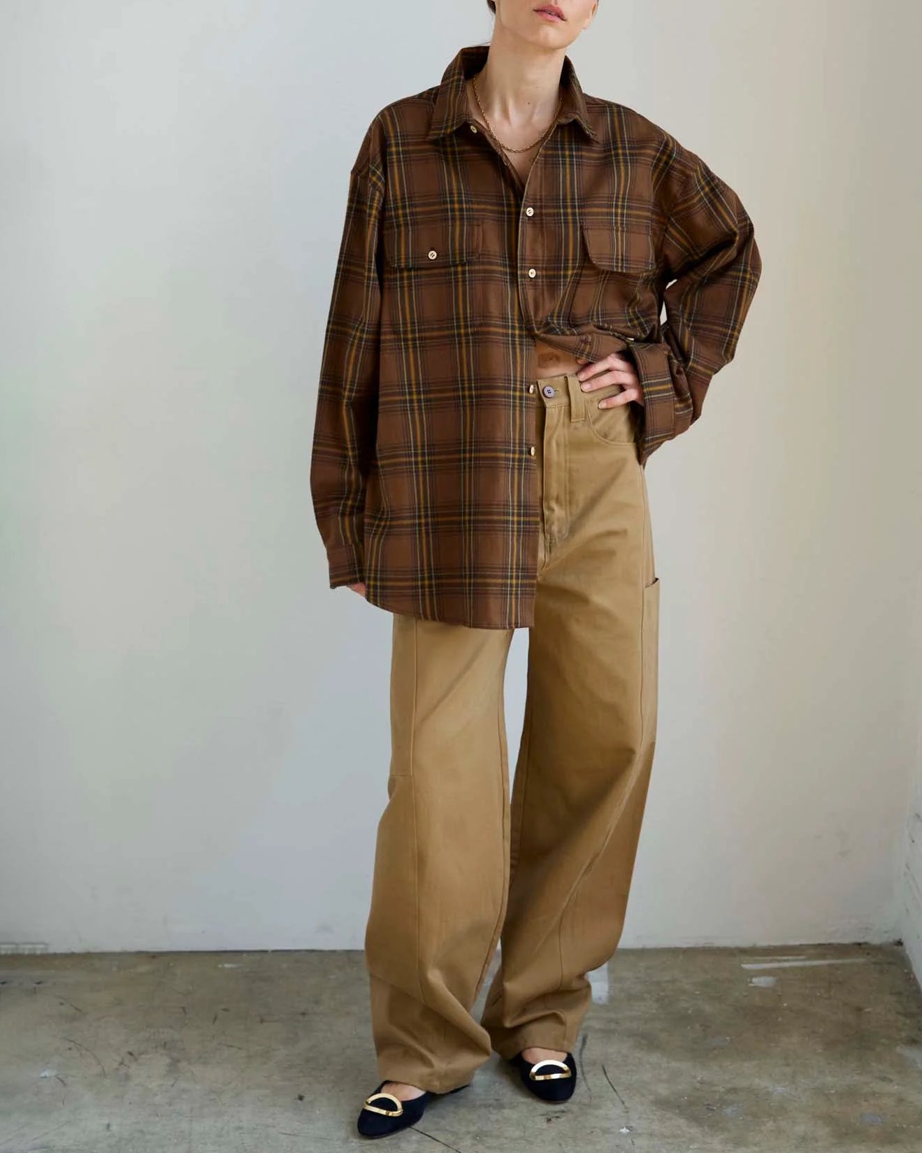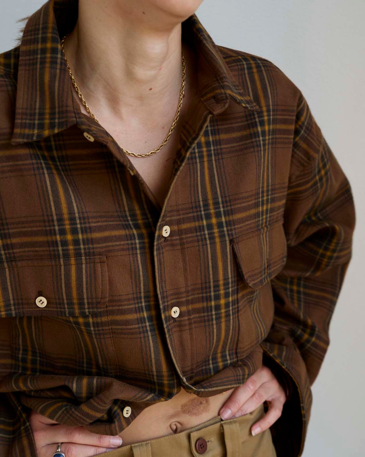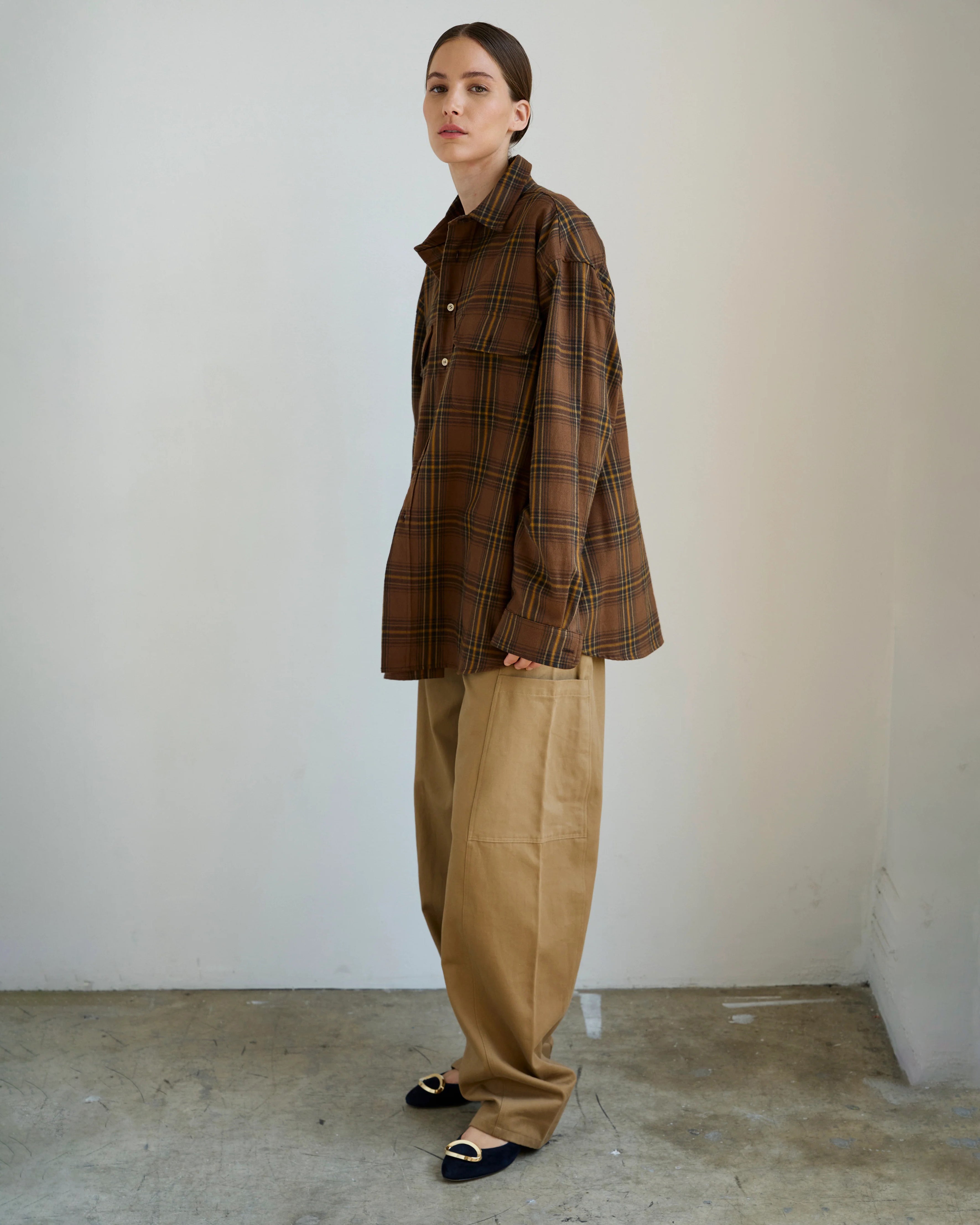 Inspired by the biggest shirt I could find, a military meets workwear kind of shape. Because it’s big, it falls, drapes, collapses around the body effortlessly. The big shirt can be worn creatively or at ease, opened, closed, buttoned, not or simply.