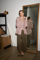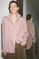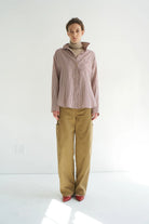 A relaxed fit and expertly cut shirt exudes beautiful drape. Fabric that expresses ease and structure, and is soft as silk. A perfectly placed button at the chest allows for a deep plunging neckline. A button just under the collar creates the opportunity for a high buttoned-up look without the choke. A small button perfectly placed on the cuff placket allows for an easily undone cuff that doesn’t get away from you. Small details make the difference and create an undone feeling that can still feel polished. Design that supports styling.
