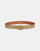 Wide belt in luxe Spanish cowhide leather and suede that burnishes and softens over time. The Wide belt has a strap that will contour to the natural shape of your body with use. Accented with a custom molded brass buckle, coated with an antique gold finish. Made in Italy.