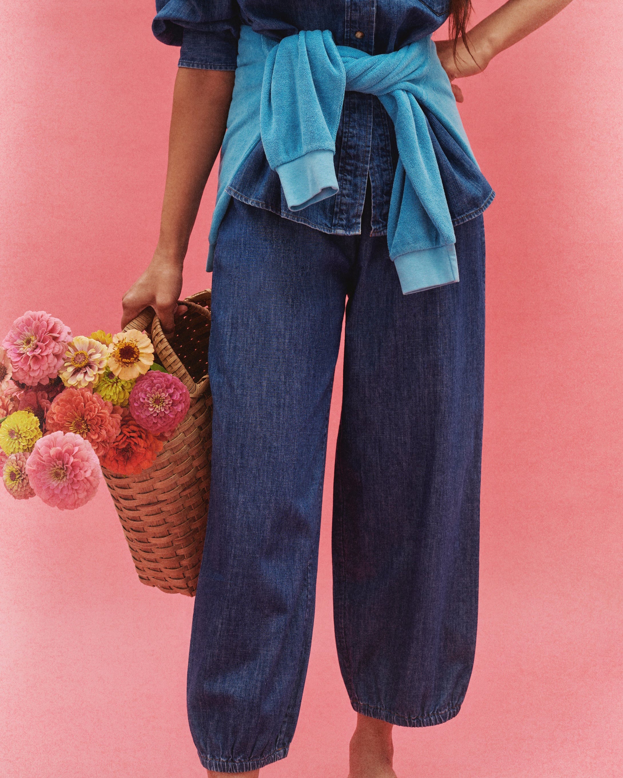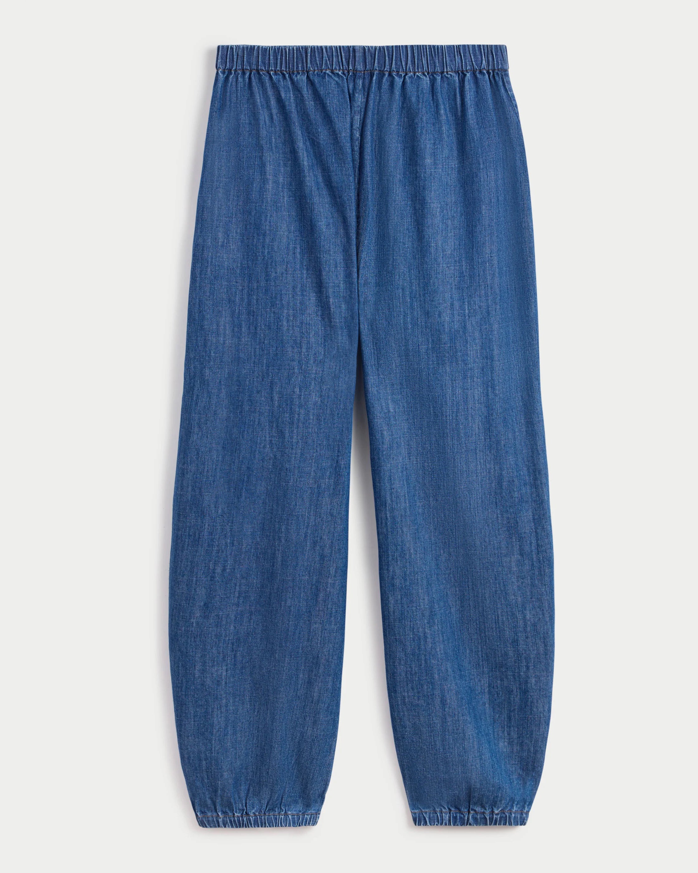 An infinitely versatile and chic silhouette. An elastic ruched waist that hits just below the belly button. Elastic-ruched leg hem hits just above the ankle.