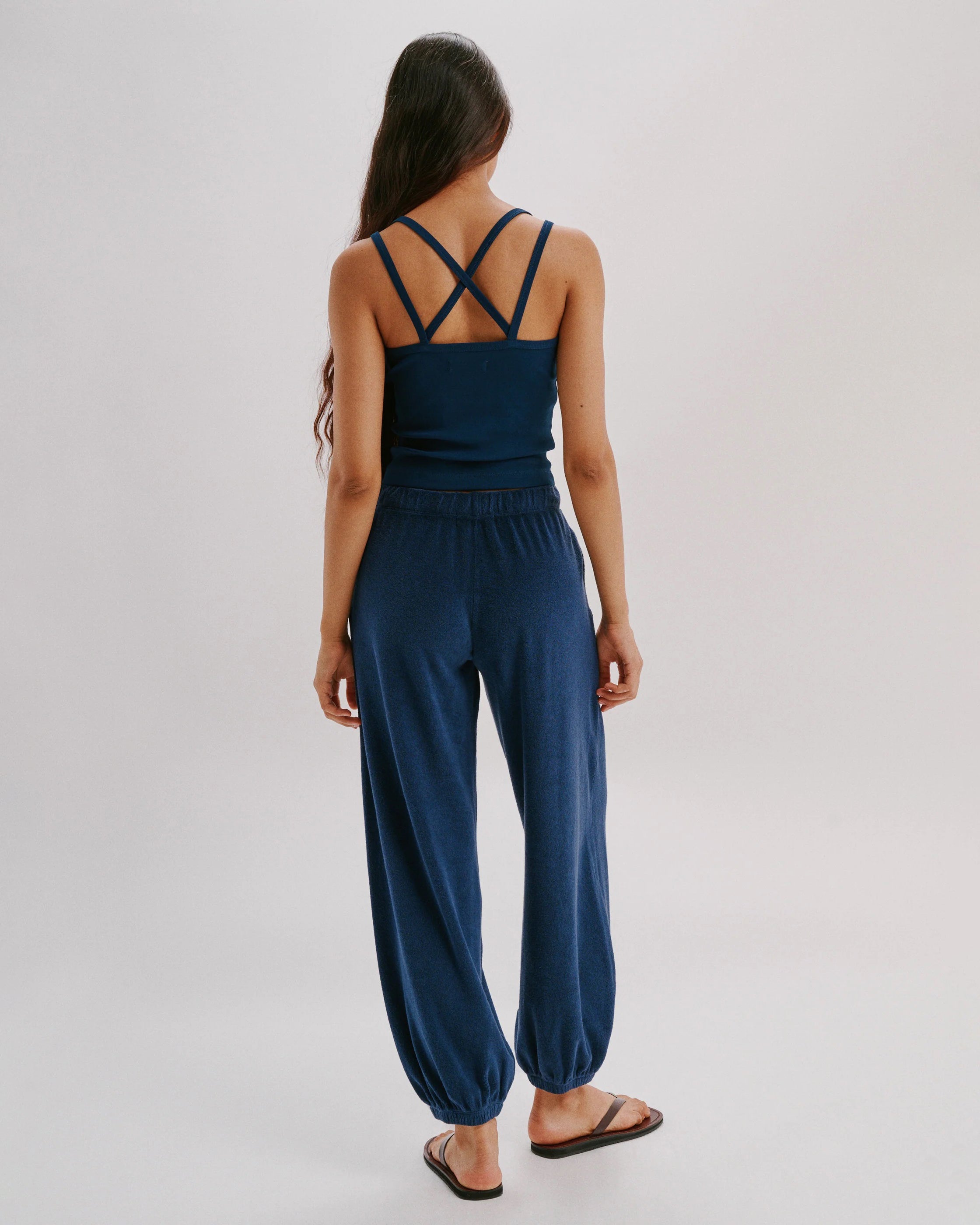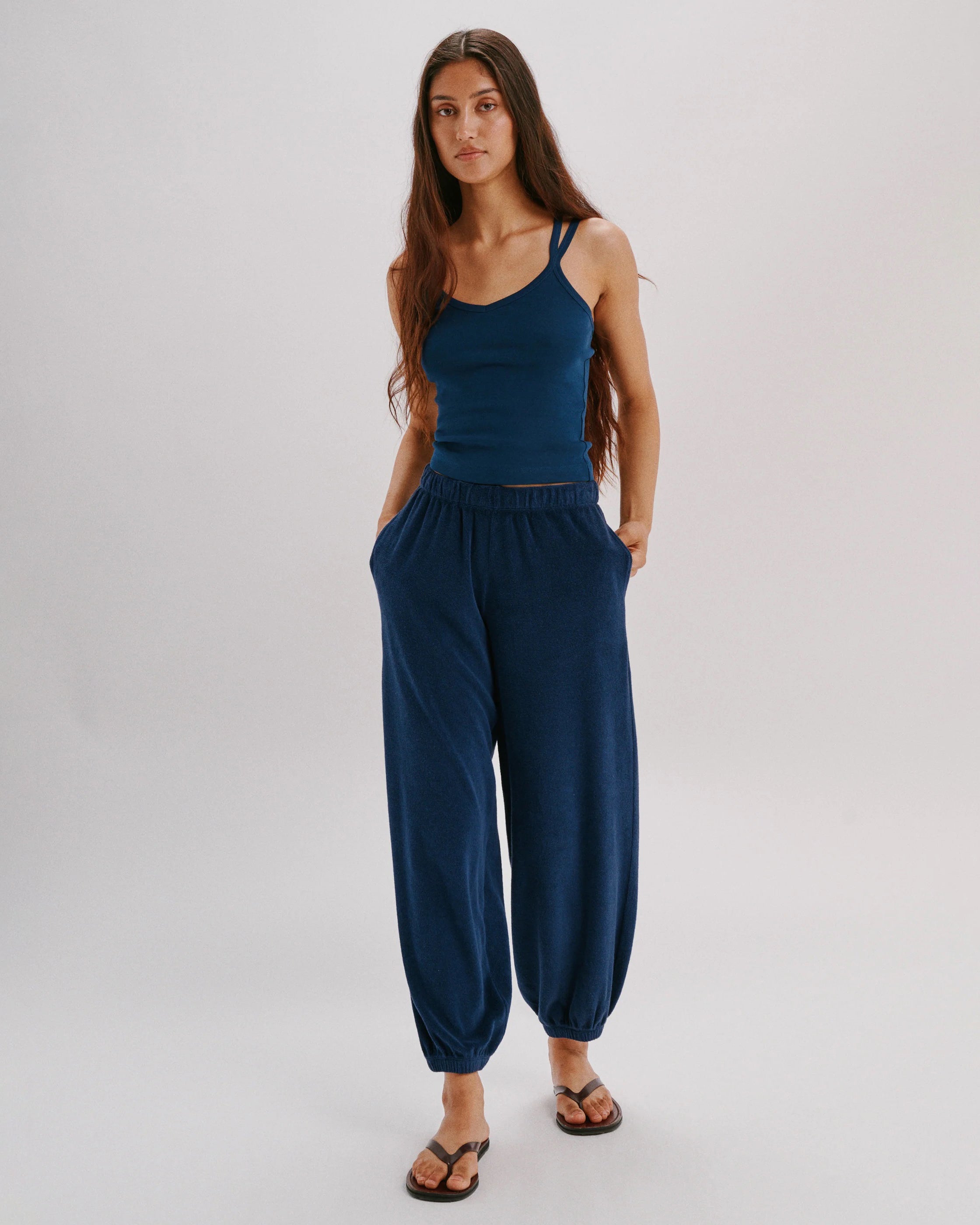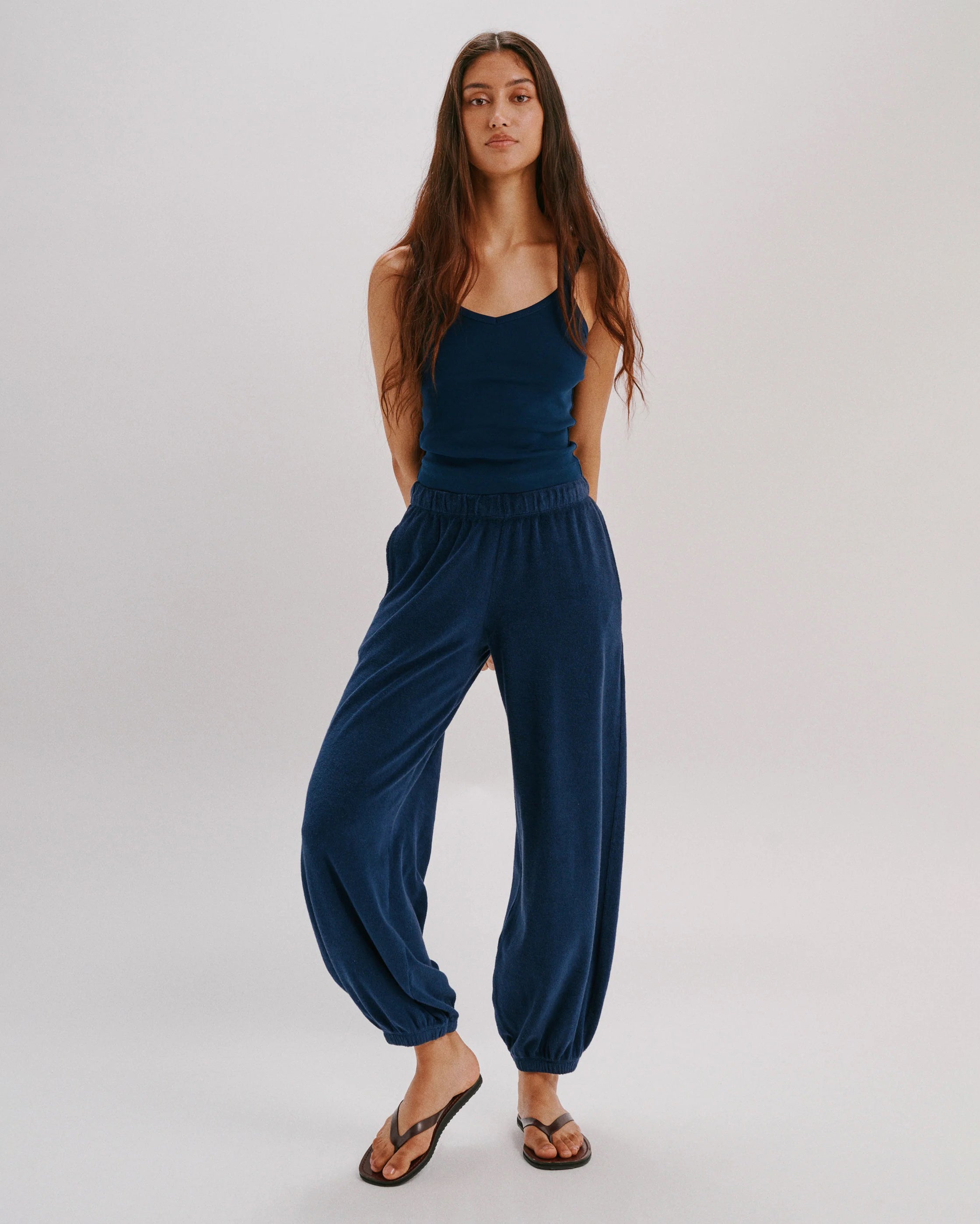 A longer version of our signature harem pants. Mid-rise with side pockets, a relaxed leg, and effortless drape.