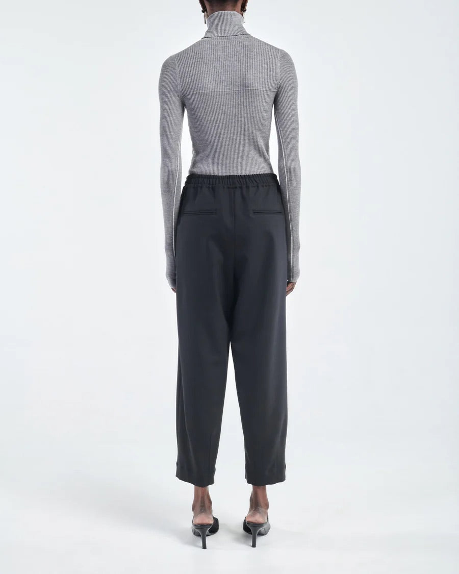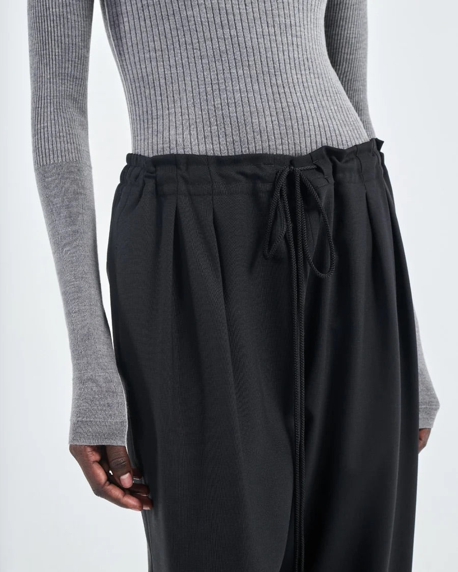 The Barrel Leg Drawstring Pant in Black is an updated take on our signature drawstring style. The pleat front barrel leg pant will narrow at the ankle and tie at the waist with a pleat front detail and side slit pockets. Made of an organic high twist Japanese cotton. Note, this style runs large, we recommend sizing down.