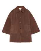 Inspired by a midcentury lady’s coat, The Car Coat is made from a faithful reproduction of a crushed faux fur leopard print with a quilted satin lining interior. With dropped shoulders, angled armholes, cropped sleeves, tailored collar, welt pockets, and sophisticated horn buttons up the front.