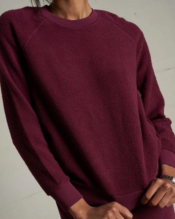 The classic sweatshirt “inside out” with exposed seam detailing and buttery soft fleece.