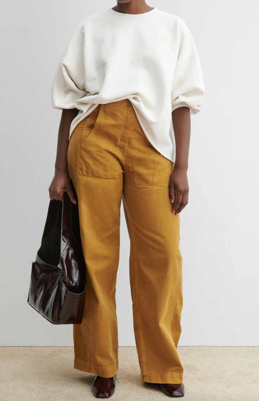 Our relaxed-fit high-waisted jeans are back in overdyed brushed bull denim, featuring a discreet back zipper and rear darts for a flattering fit. Cut to a wide-leg silhouette, offering a relaxed and spacious feel, with deep square pockets and unique coin pockets for functionality.