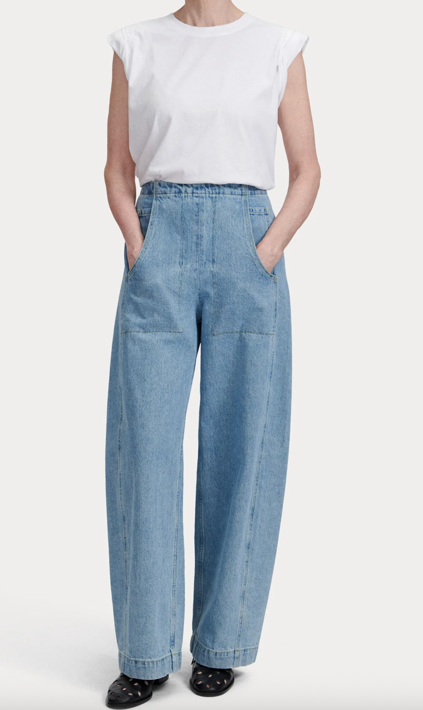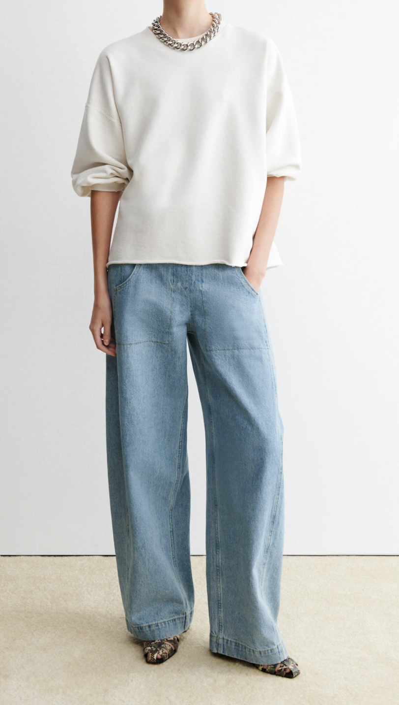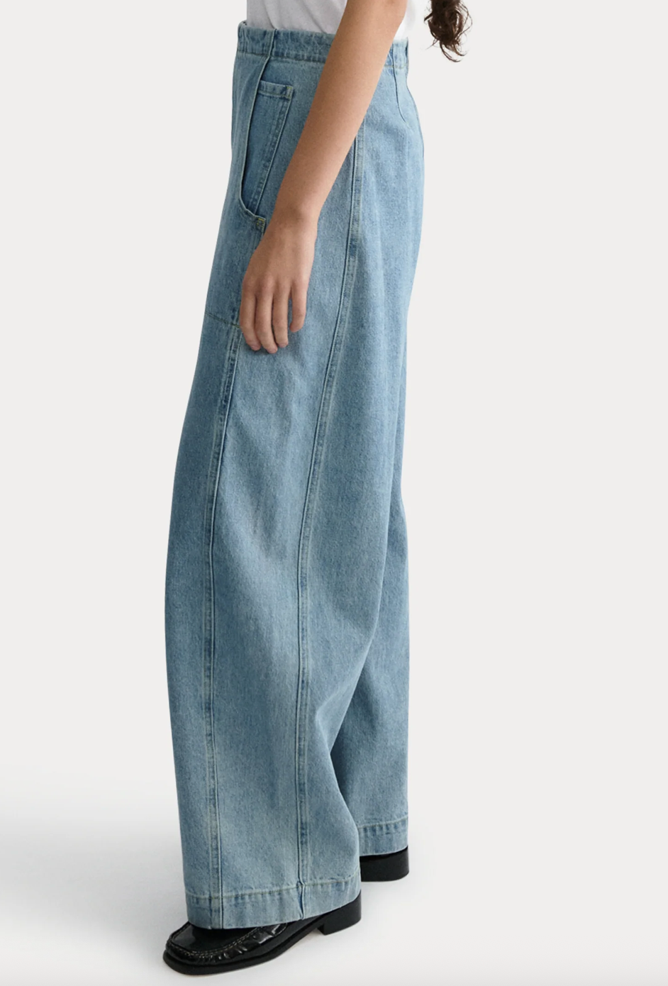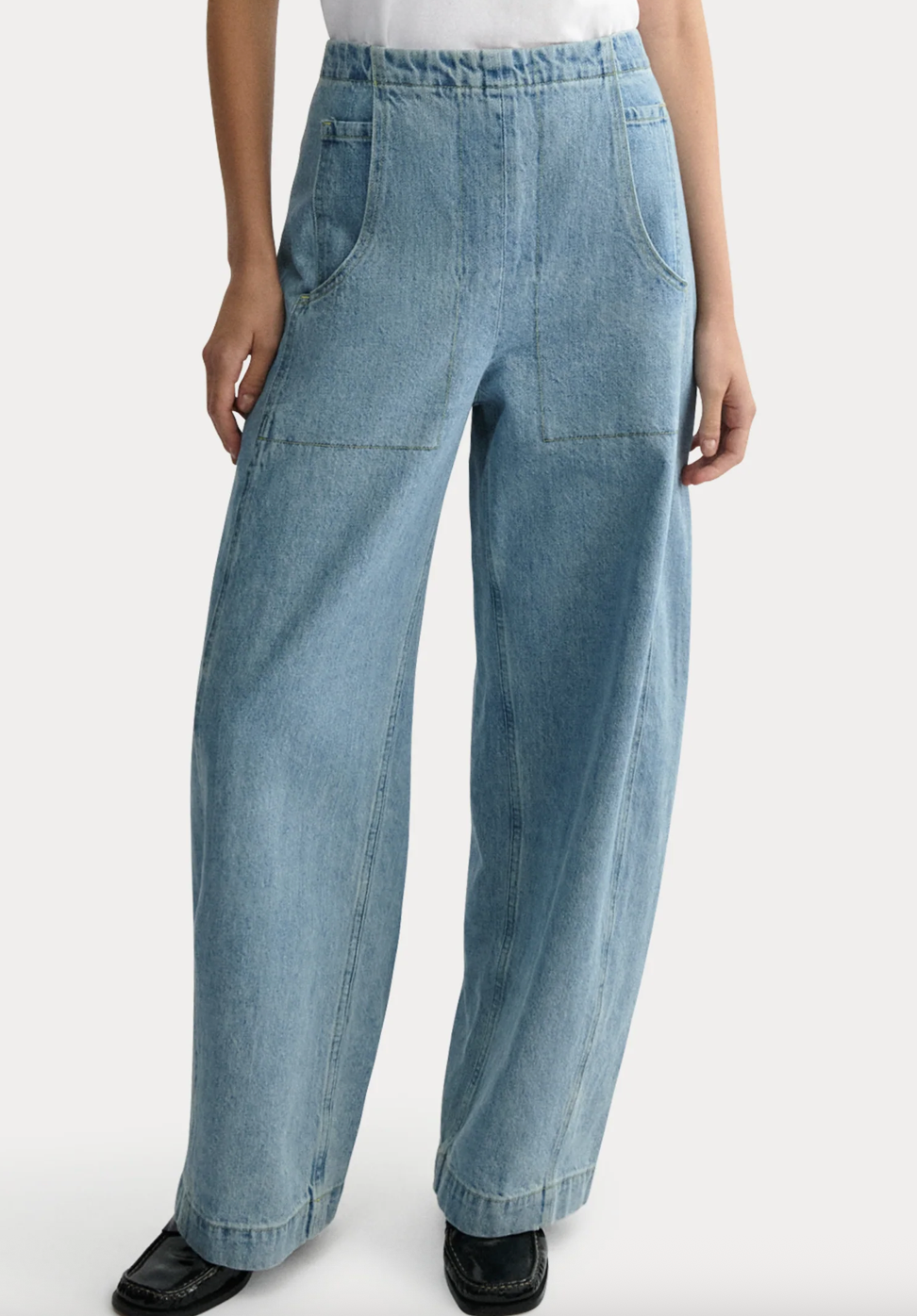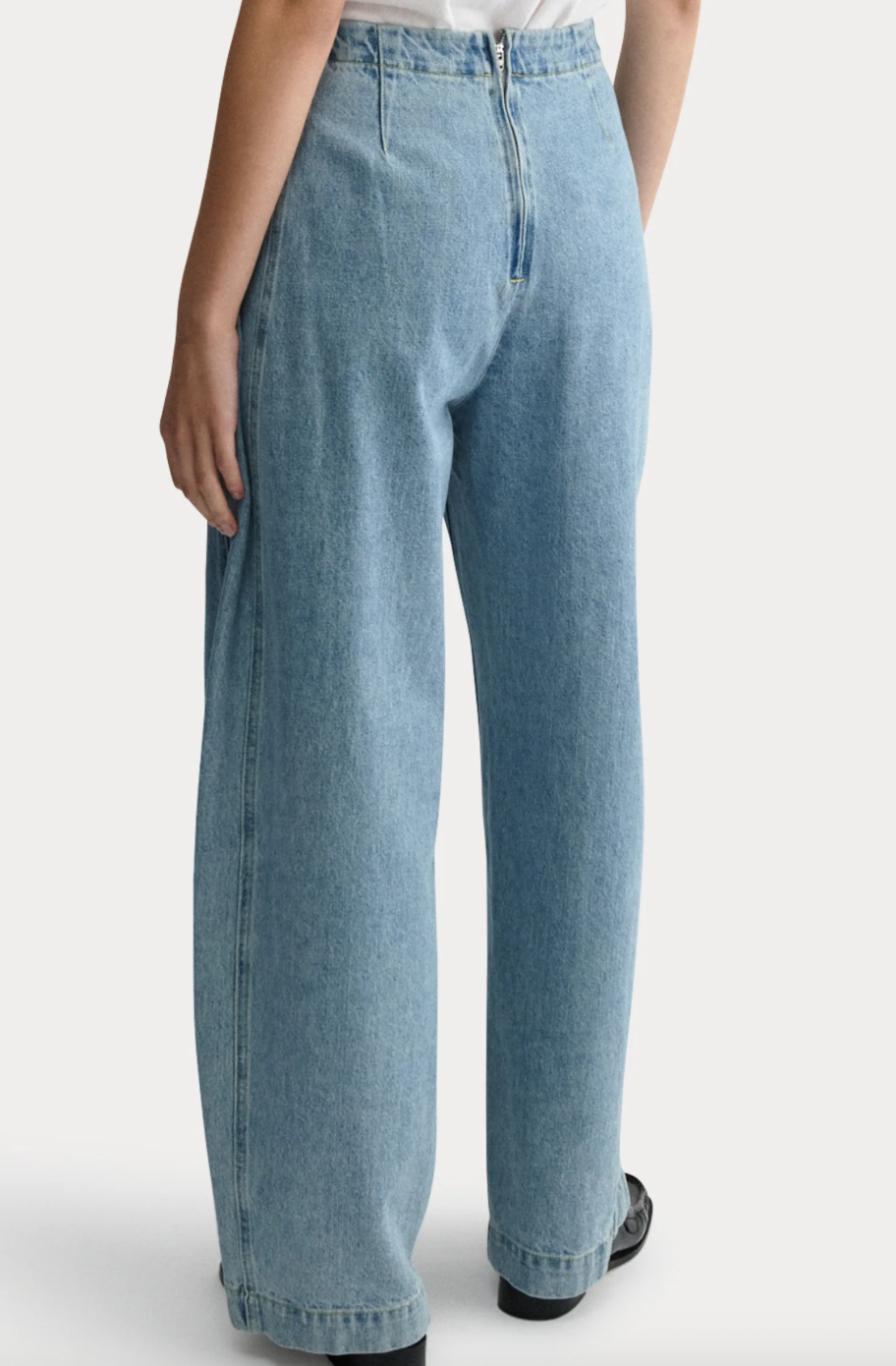 Our relaxed-fit high-waisted jeans are back in Washed Mission Denim, featuring a discreet back zipper and rear darts for a flattering fit. Cut to a wide-leg silhouette, offering a relaxed and spacious feel, with deep square pockets and unique coin pockets for functionality.