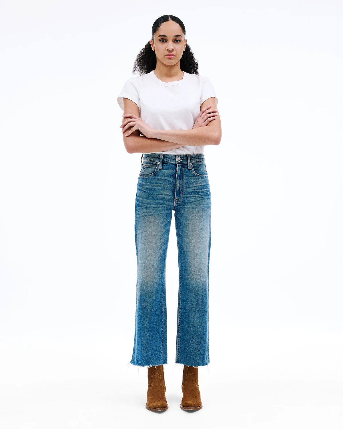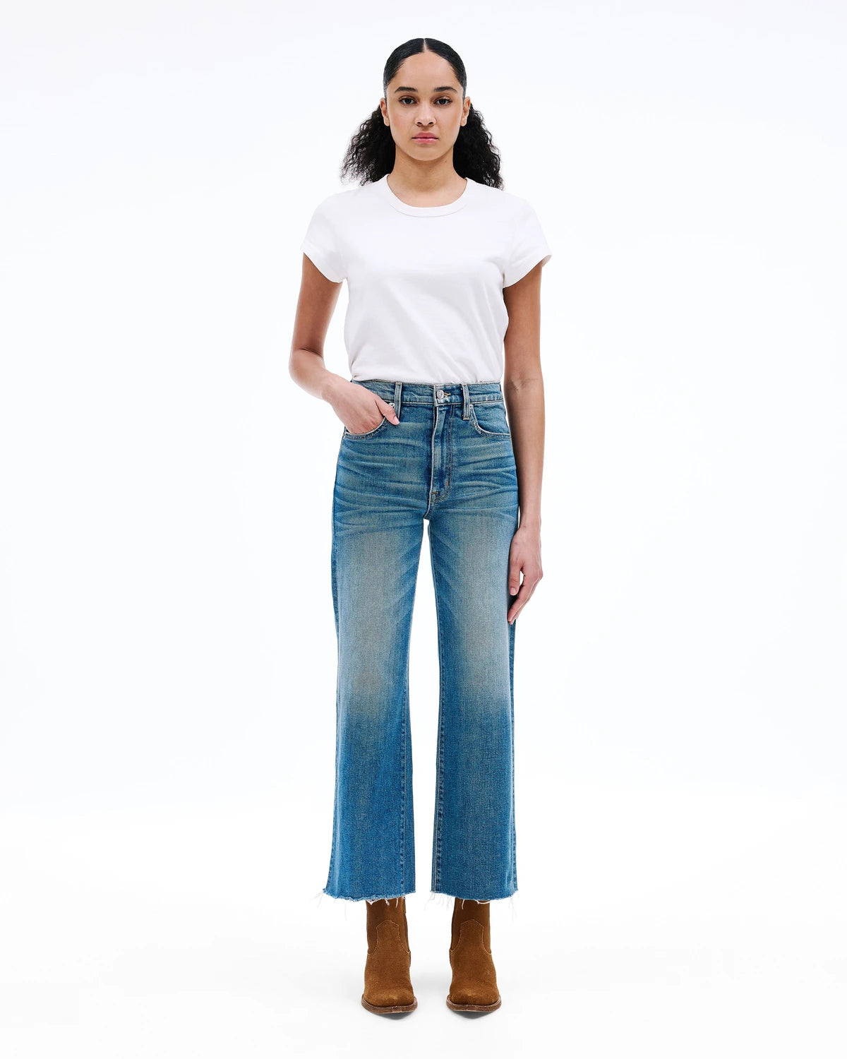 Grace Crop is a signature style designed to elongate the leg with a high-rise waist and a playful wide-leg silhouette featured in a shorter inseam.