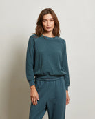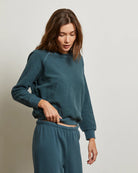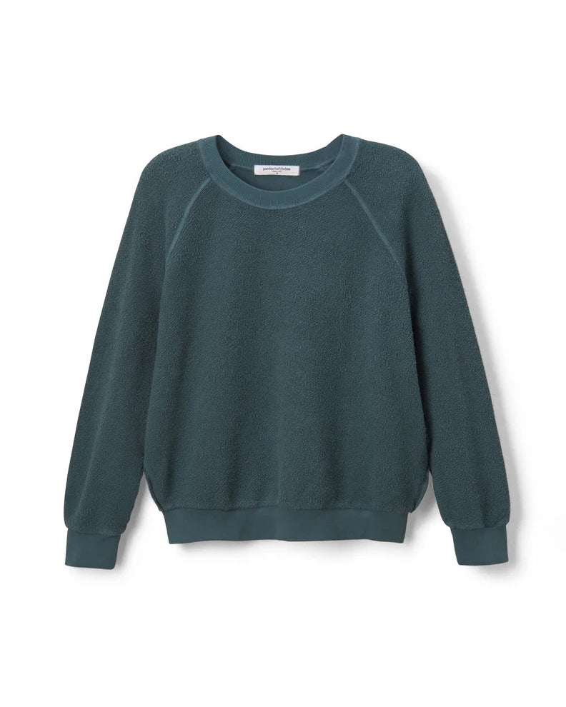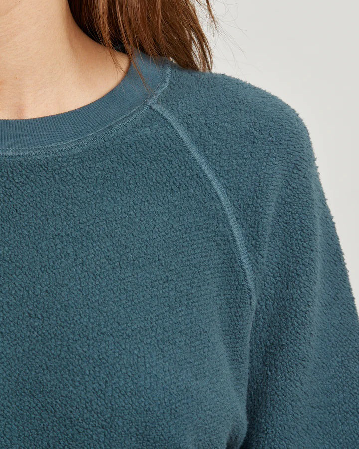 The classic sweatshirt “inside out” with exposed seam detailing and buttery soft fleece.