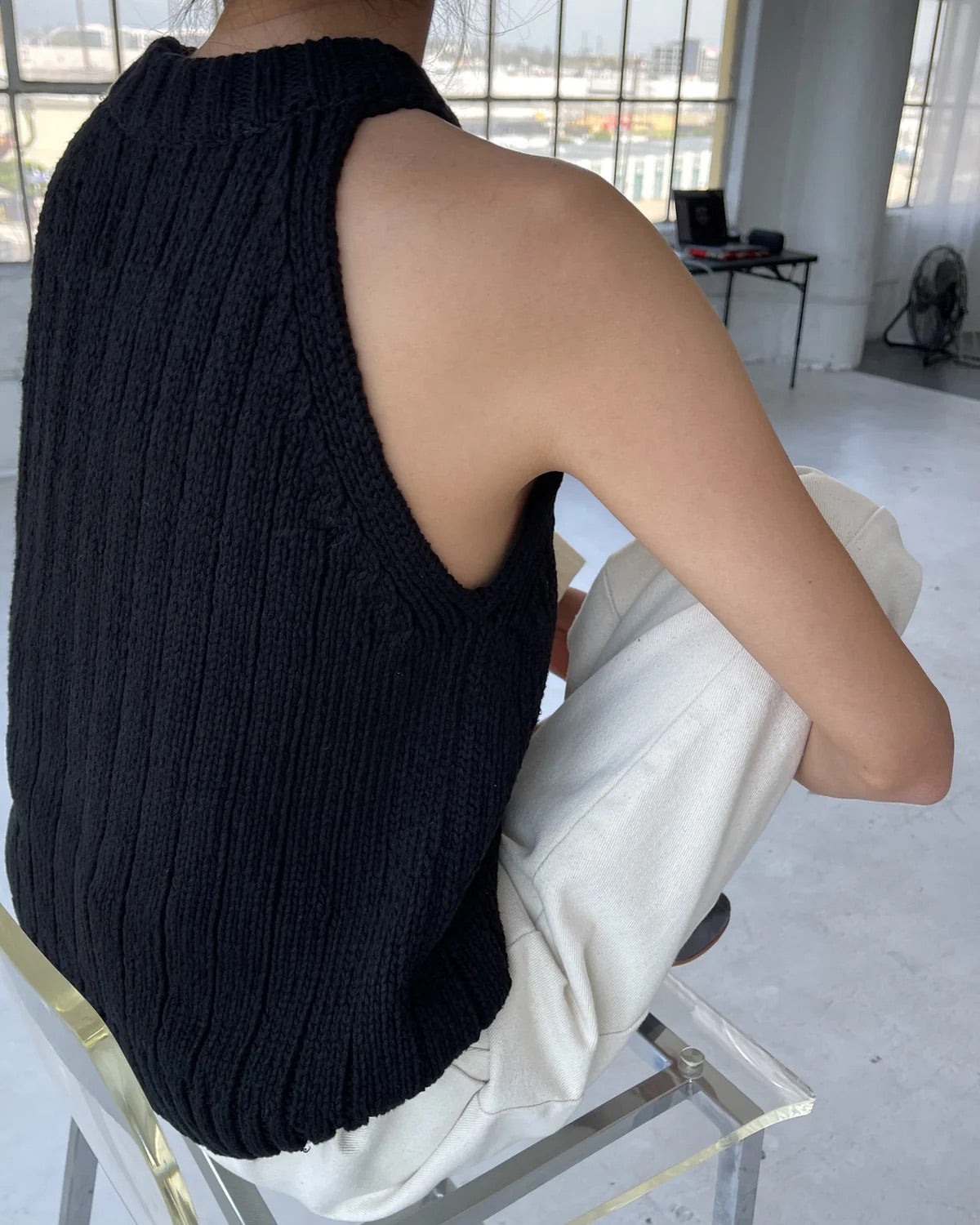 Claire Cotton Sweater Tank in Black