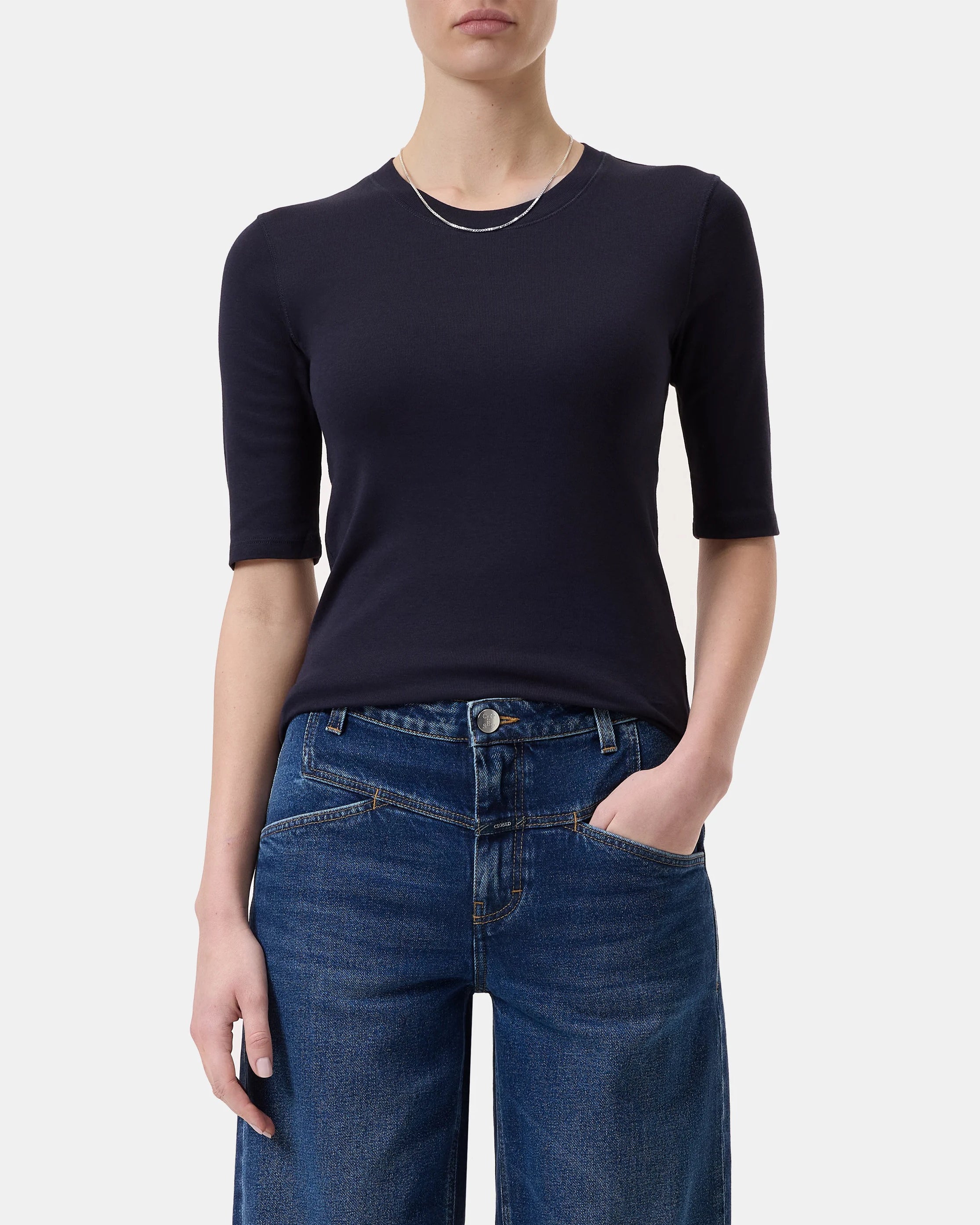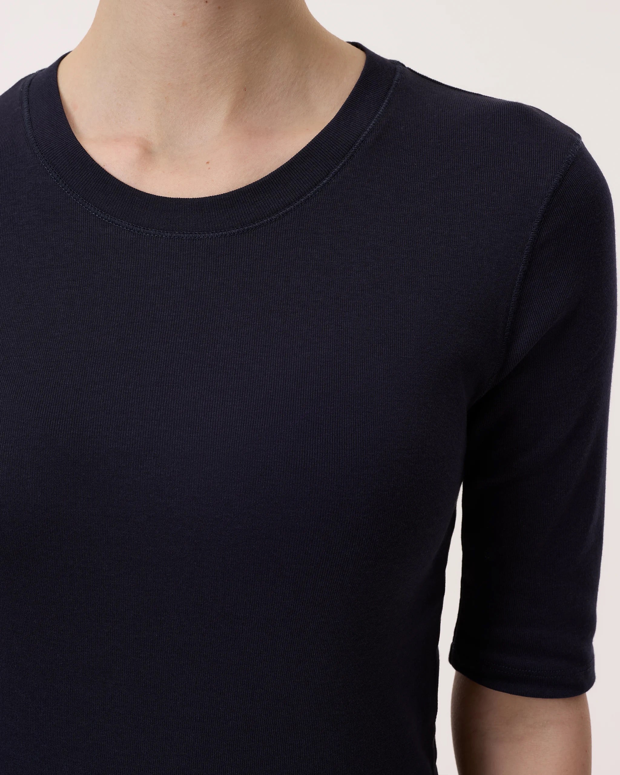 Our T-shirt in a super soft cotton-modal blend is particularly comfortable to wear. Made of finely ribbed jersey with a round neckline, straight hem and 3/4-length sleeves.