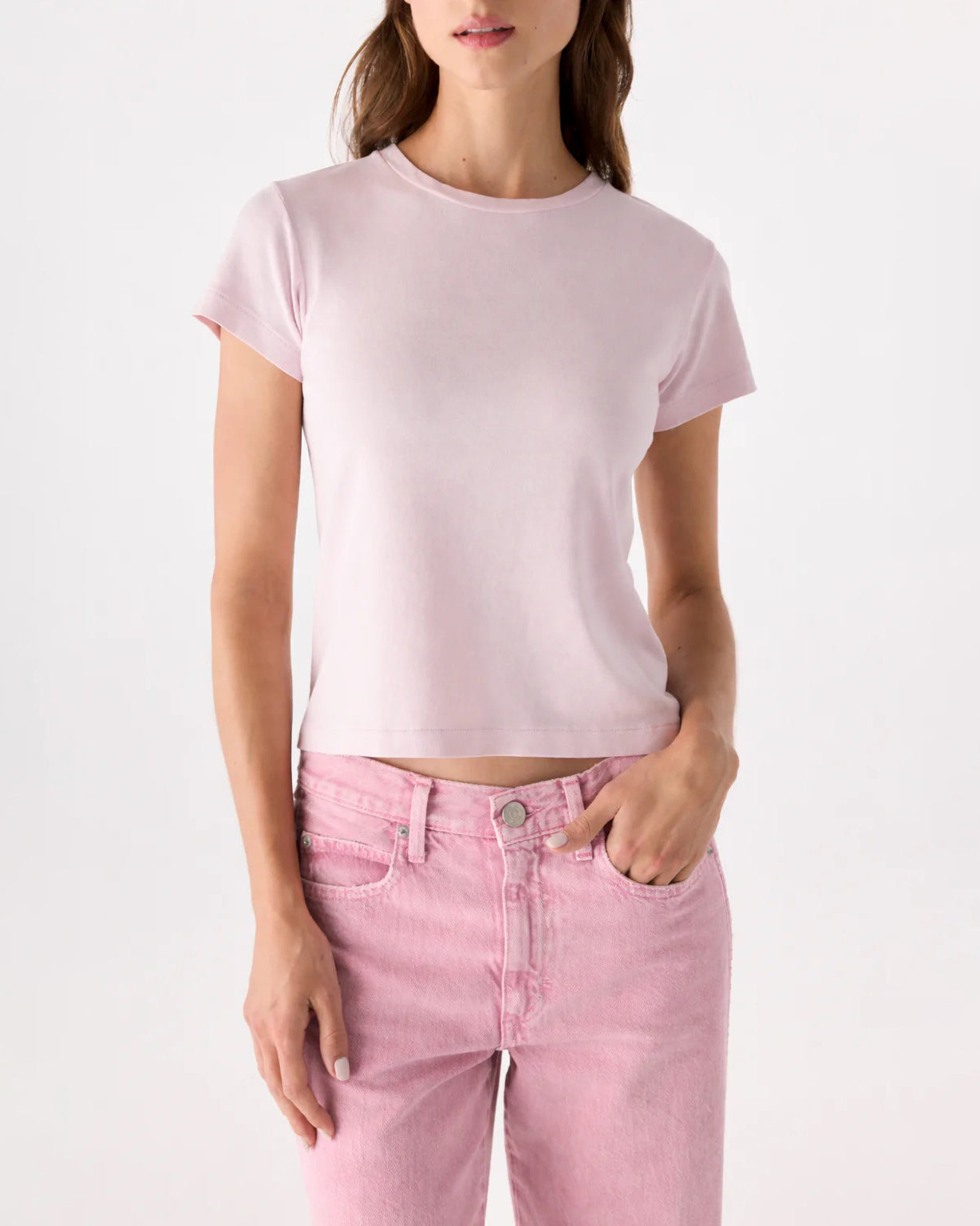 A shrunken baby rib tee with an edge that pairs effortlessly with denim or wovens. A modern essential for daily dressing.