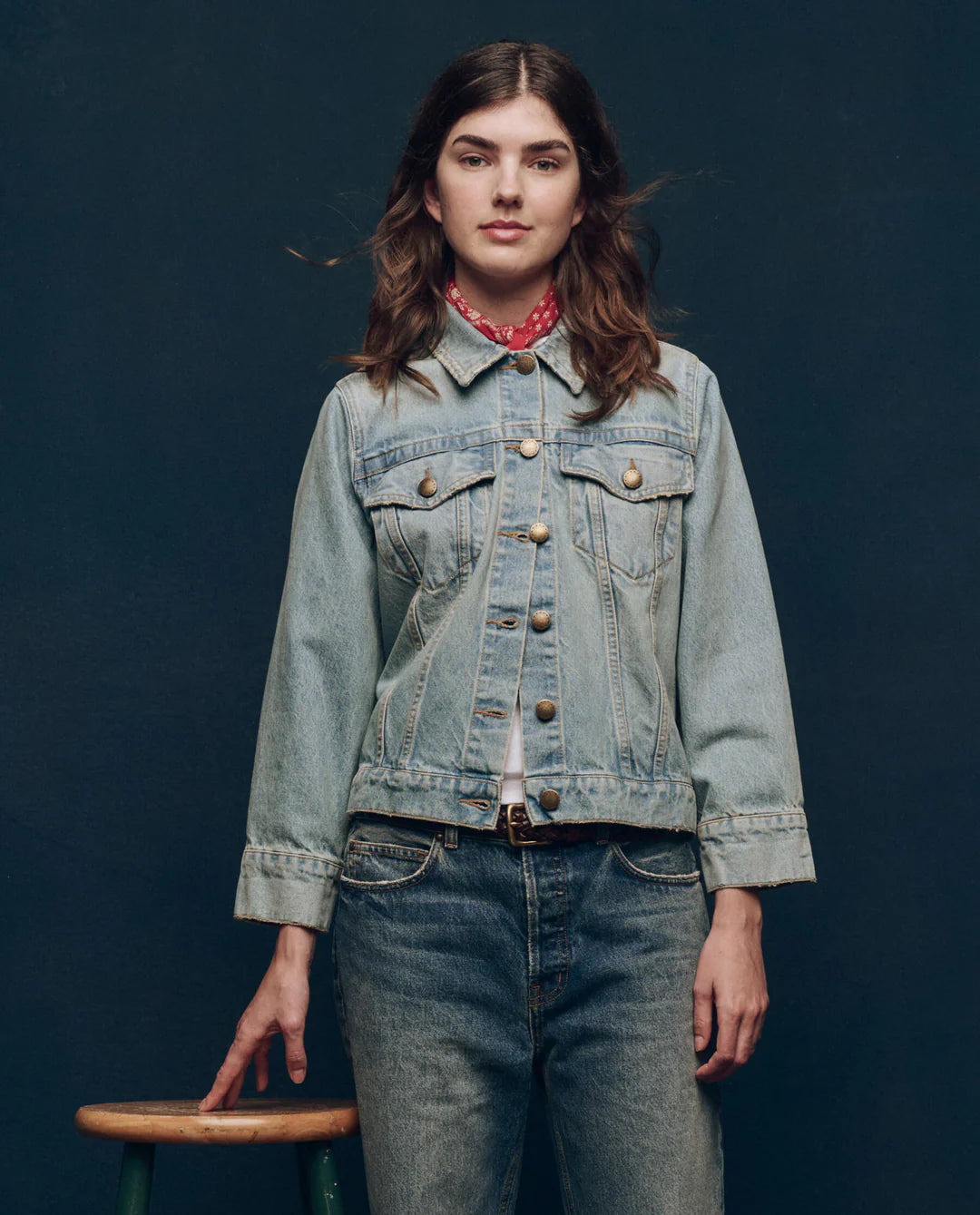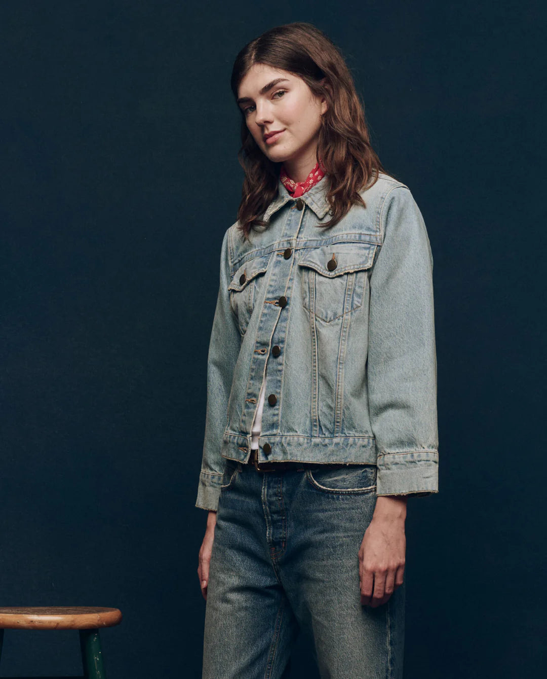 The Slouchy Jean Jacket. is the kind of piece you’ll hold onto forever. Made-in-LA and vintage-inspired with classic details including oversized patch pockets, metal buttons, double-needle stitching details, and the perfect vintage wash. This jacket is designed with a relaxed, boxy shape worn by both workers and rockers, refined in the 1960s with its clean lines, signature V-shaped seams, and flat pockets. Wear yours with a white tee and denim for a classic look we love. Part of our collectors capsule in a heavy weight rigid denim made of 100% cotton that is washed in a classic shade of indigo and worn to perfection.