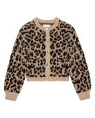 Classic with a twist, this cropped cardigan is spun from a lofty alpaca blend and knit with a bold leopard jacquard in a playfully oversized scale this versatile sweater is finished with blouson sleeves and light horn buttons.