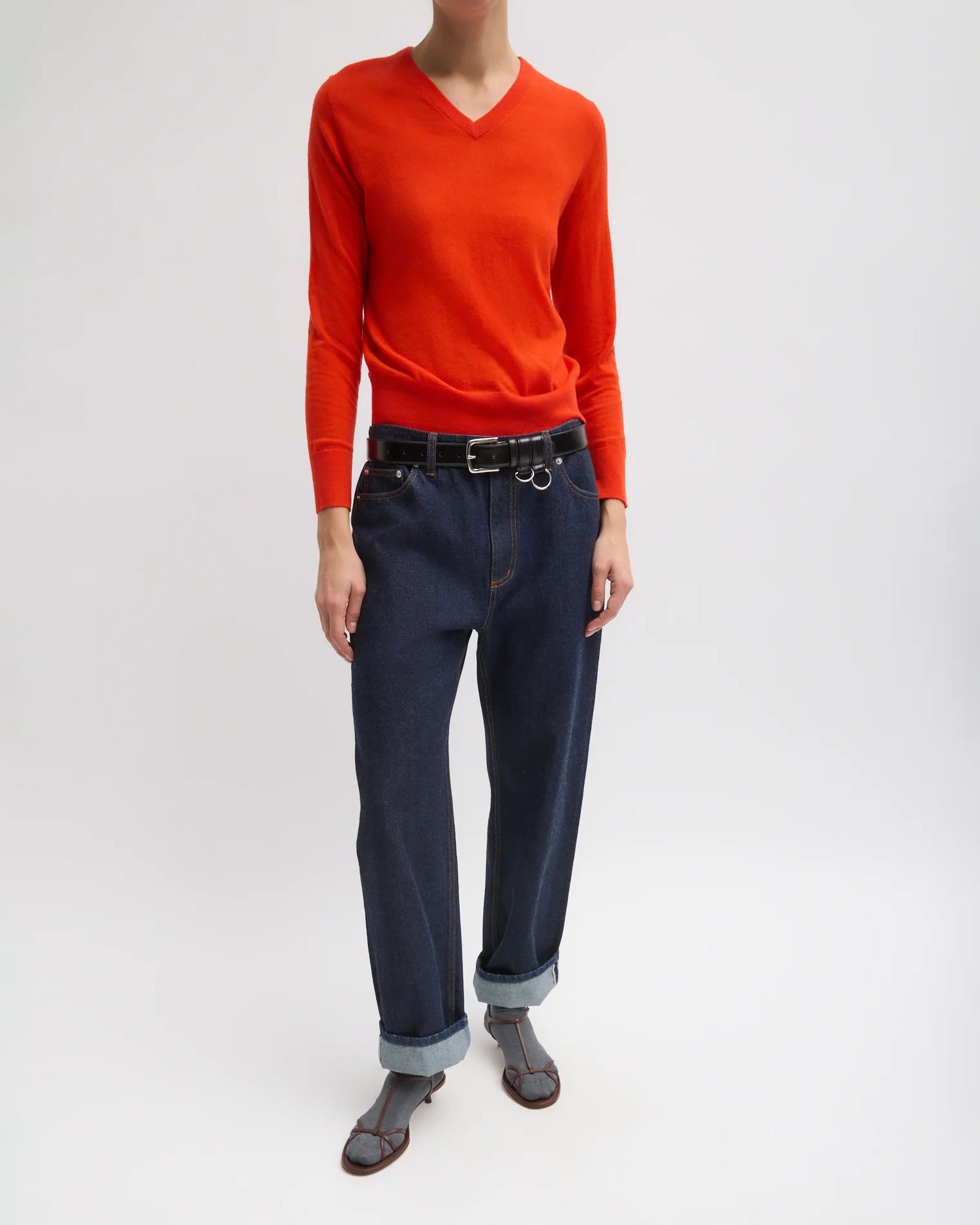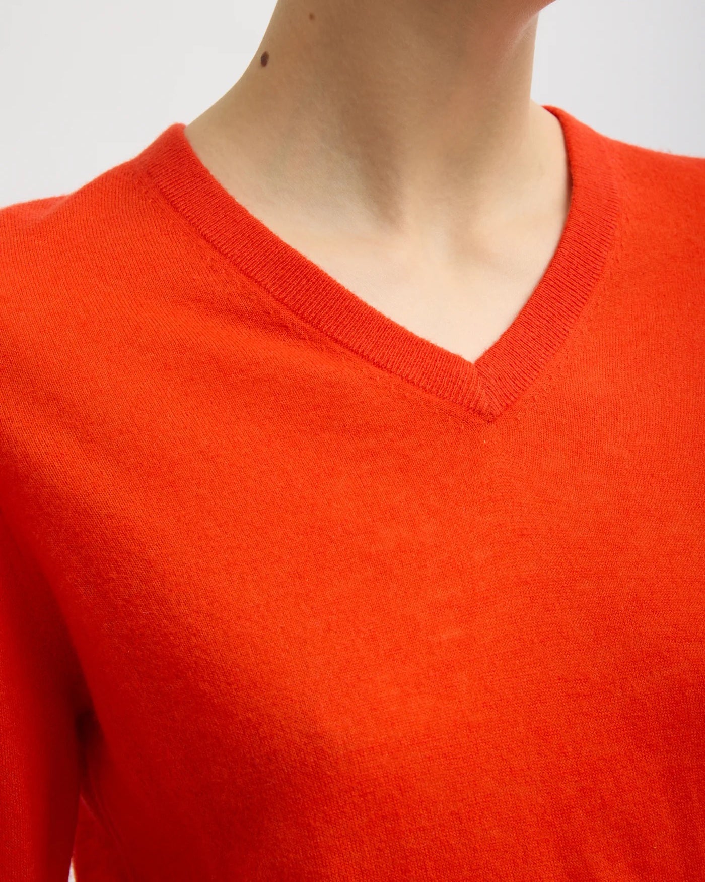 Skinlike Mercerized Wool Shrunken Vneck Sweater