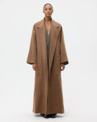 Long double-breasted overcoat in cashmere coating. The Em coat is an oversized silhouette with a detachable wrap belt. Complete with a notched lapel, deep side pockets and back vent.