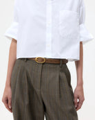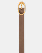 Narrow belt in luxe Spanish cowhide leather that burnishes and softens over time. The Narrow Belt has a strap that will contour to the natural shape of your body with use. Accented with a custom molded brass buckle, coated with an antique gold finish. Made in Italy.