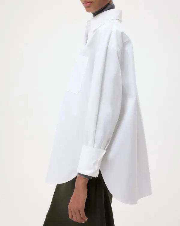 Oversized shirt in washed linen. The Big Joe is a menswear inspired, relaxed button down. Complete with a chest patch pocket, button up placket, french cuffs and a tulip hem.