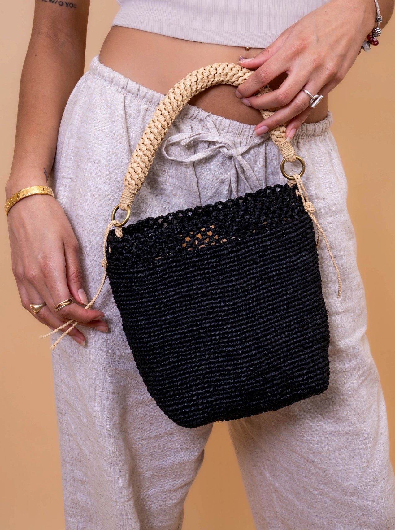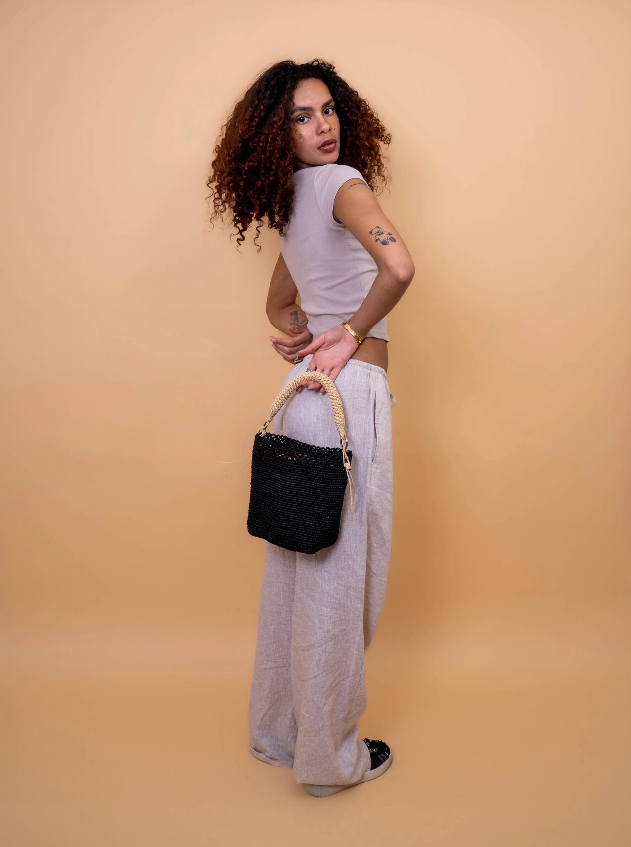 Discover our 100% raffia crochet bag, combining elegance and functionality. With its lace-like openwork mesh and braided handles, this bag is perfect for your outings in town. Its simple colors add a refined touch to all your outfits.