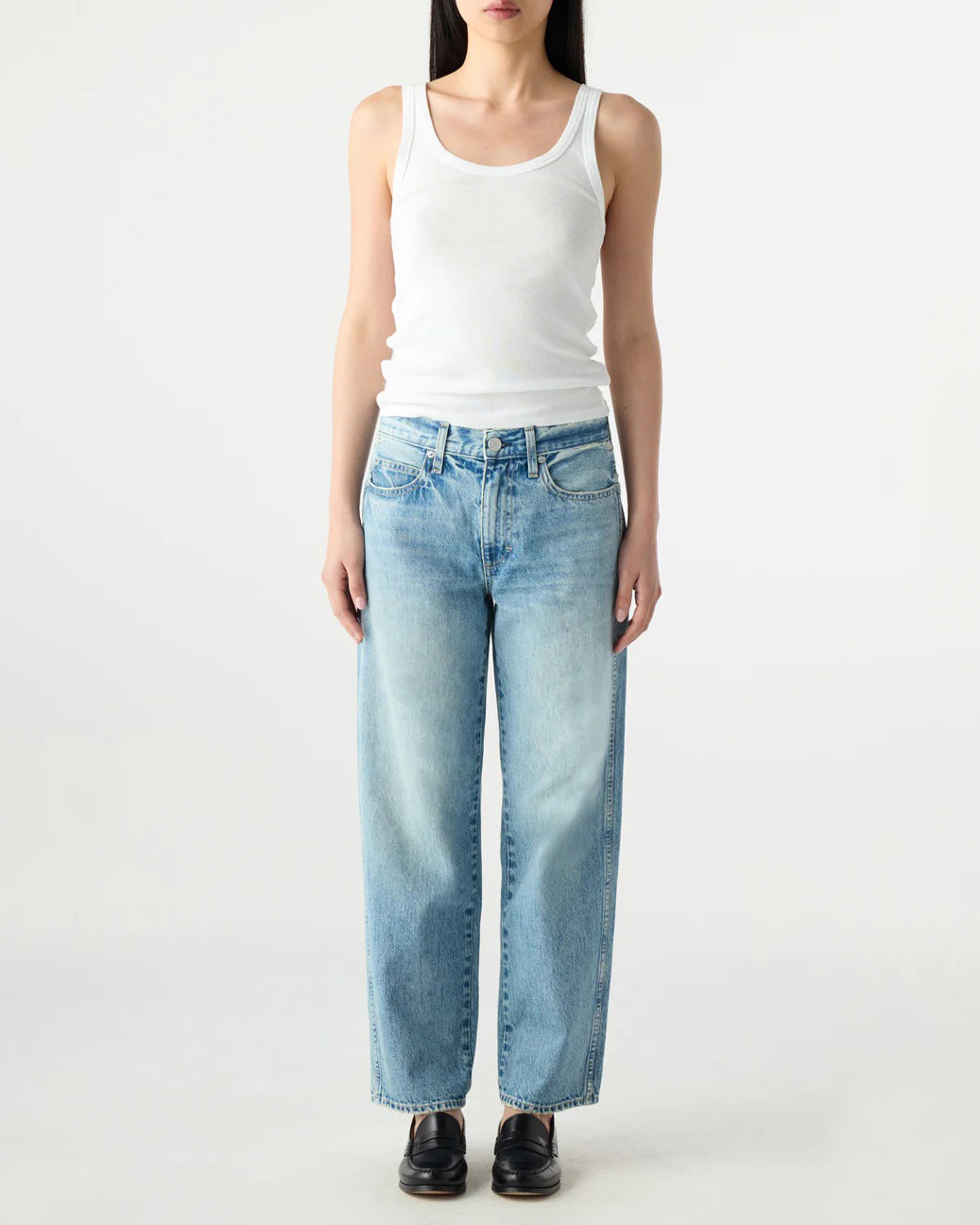This cropped, wide straight leg is our easiest fit yet. With a mid rise, this pair is meant to sit low on the hips for a relaxed look. Thoughtful distressing throughout. Zip fly.