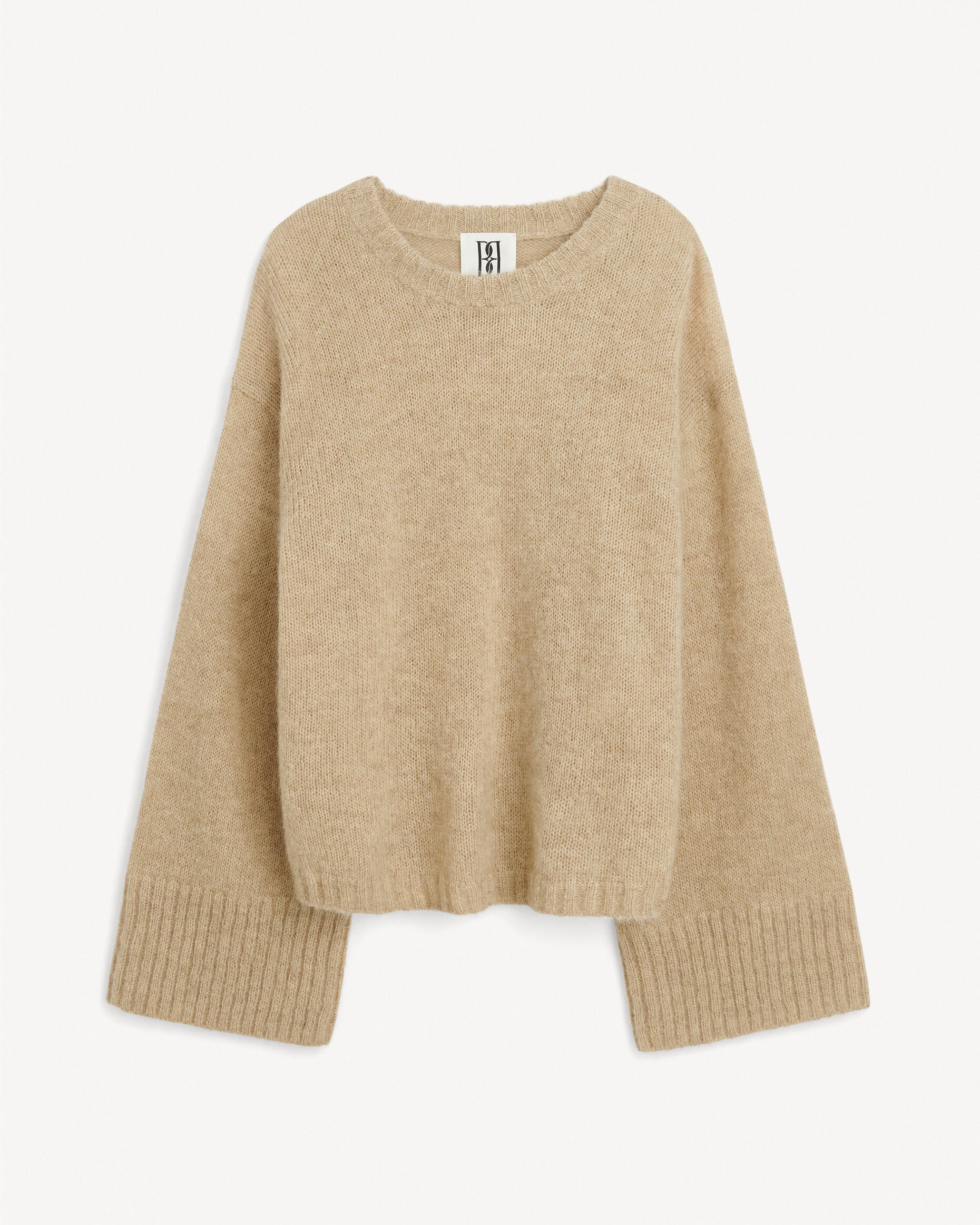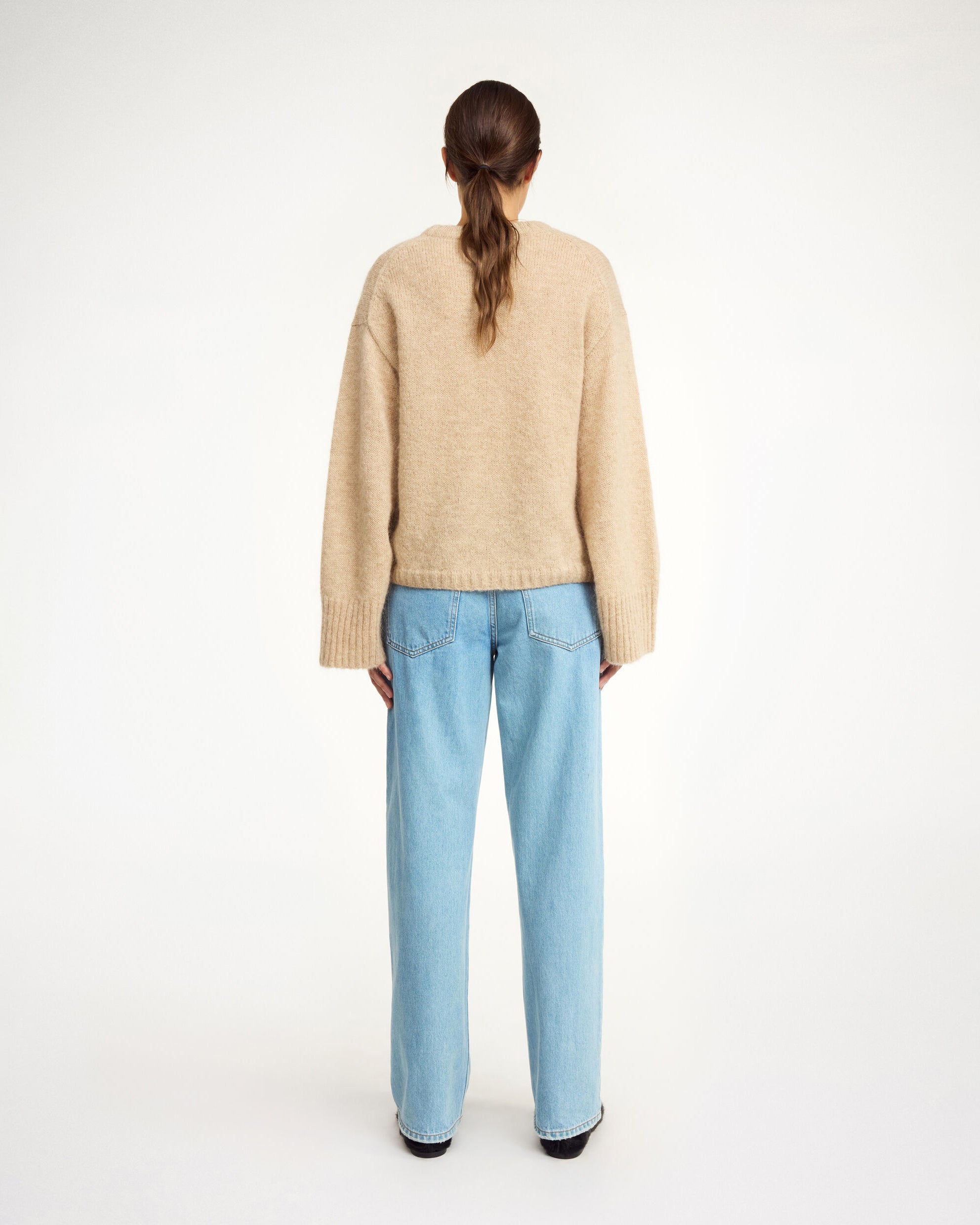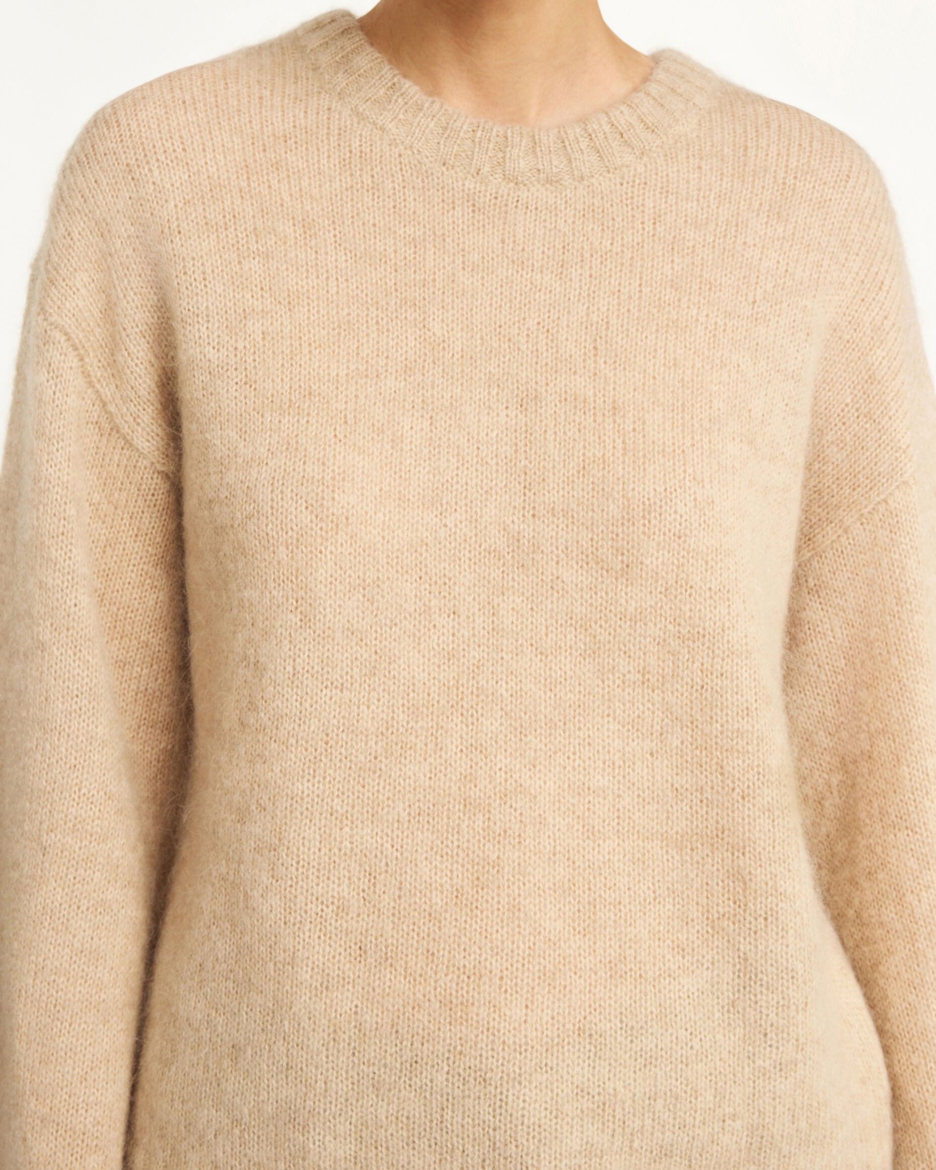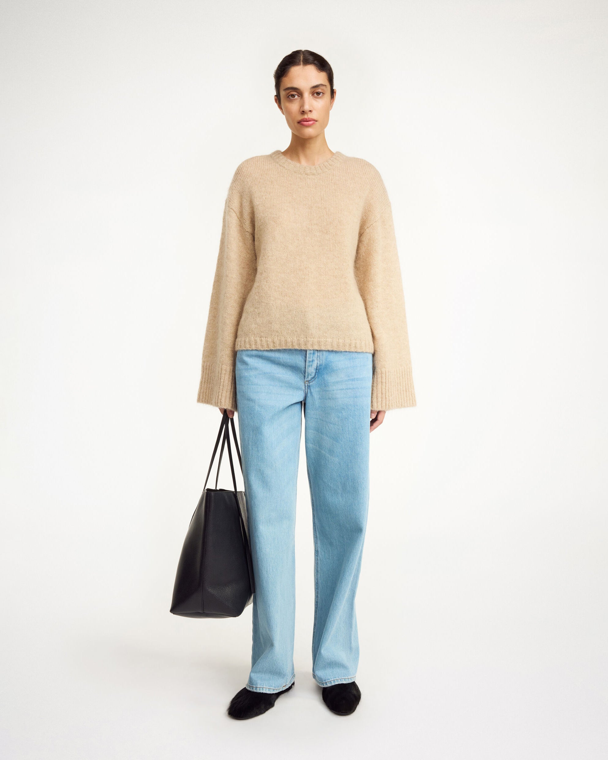 Knit from a blend of mohair and wool, the supreme softness of the Cierra sweater is matched by its contemporary appeal. This piece features ribbed trims along its round neckline and wide sleeves, and is shaped with dropped shoulders that add to its slightly structured shape. You’ll find yourself reaching for yours this season, and the next.