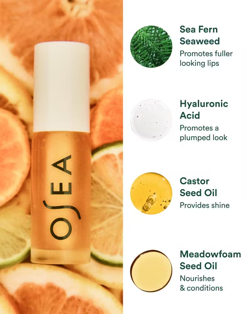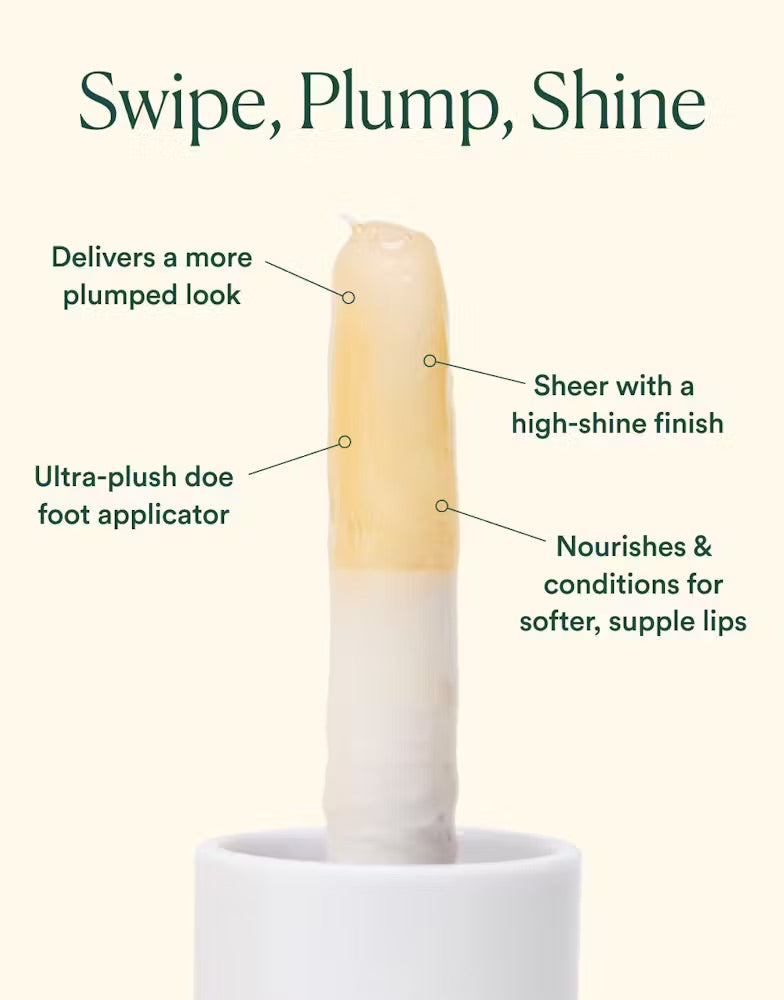Our sheer, juicy lip oil is powered by hyaluronic acid for a more plumped look. This nourishing formula with nutrient-rich seaweed conditions for softer, supple lips. Our ultra-plush applicator delivers a boost of high shine on bare lips or over your favorite lip color.