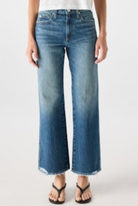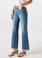 Mid rise with a relaxed fit through the hip, this jean features a subtle, easy flare and a cropped length for that effortless look. Zip fly.